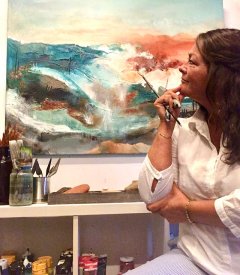 Jeg er autodidakt billedkunstner - dvs jeg er selvlært og har siden 1994 altid elsket at eksperimentere og arbejde med akrylmalingen blandet med havsand og vand. Anvender spartel, pensel og fingrene, med tiden er også andre medier taget i brug samt oliekridt, kul, krakkeleringspasta m.m. og det kribler altid i fingrene for at prøve noget nyt.